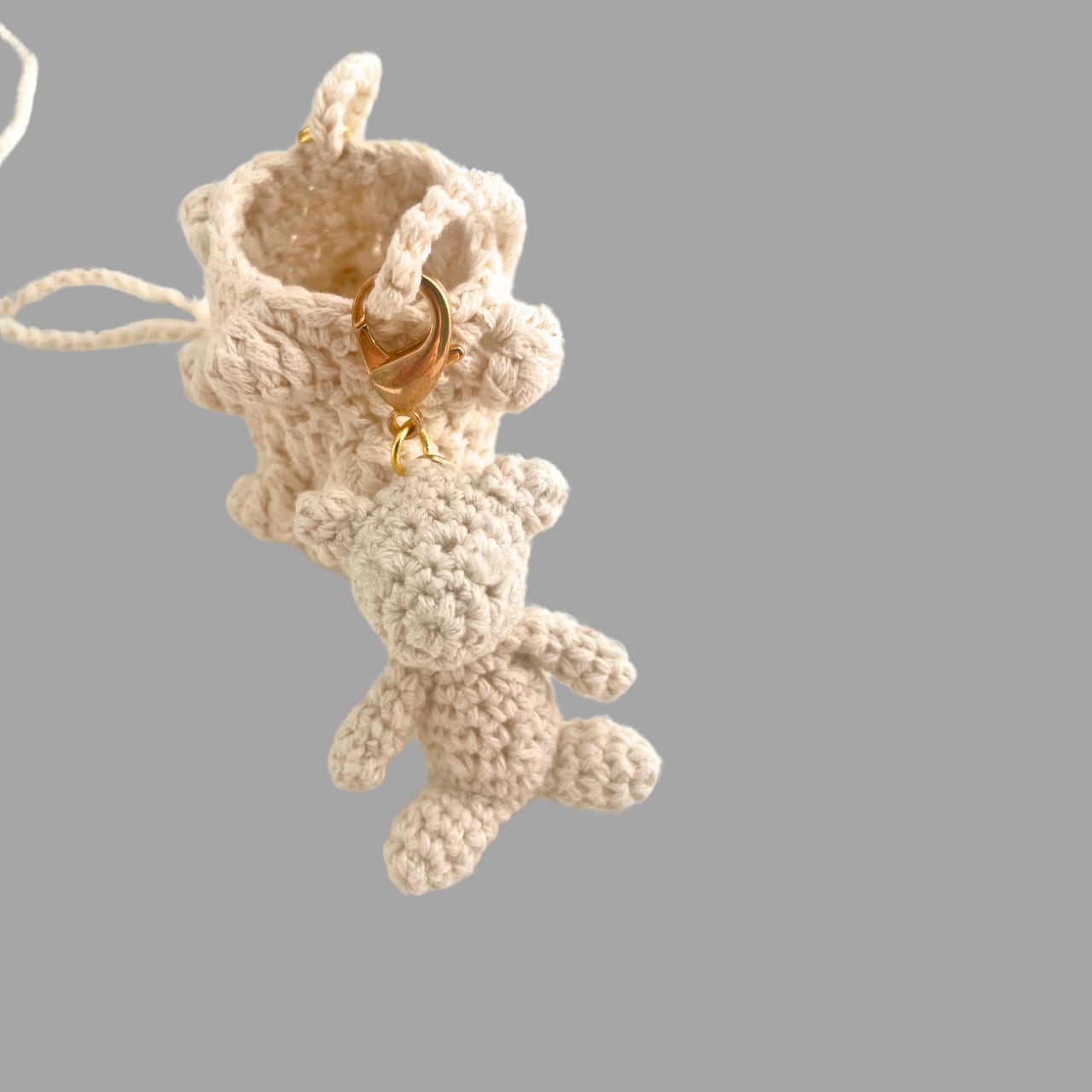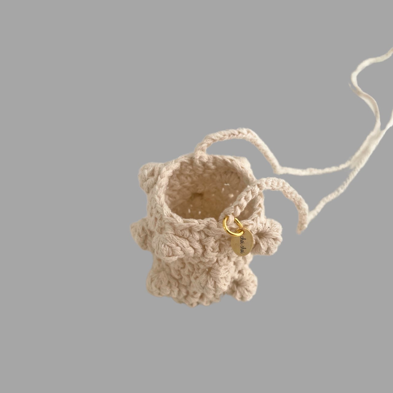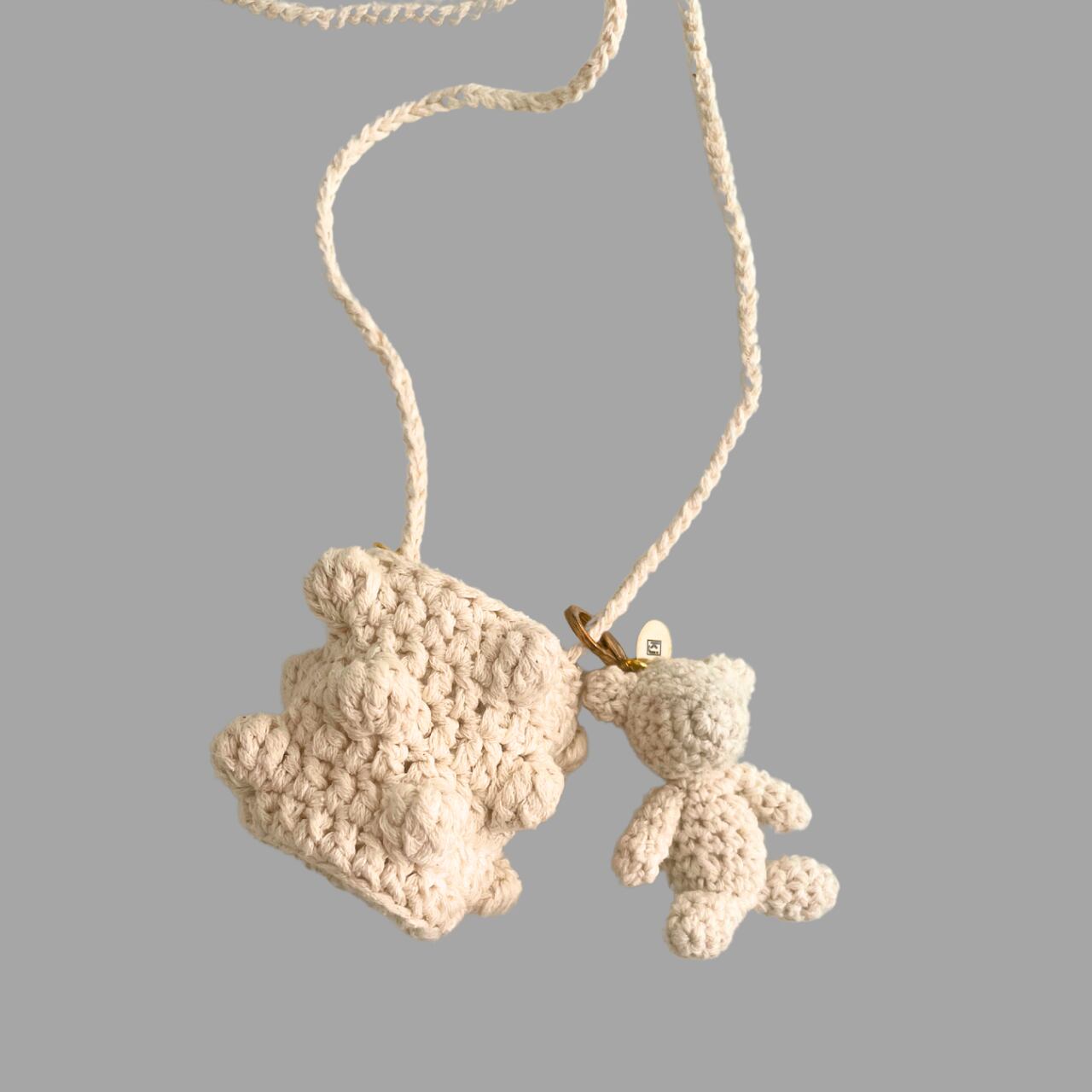 バケットペンダント / Off White / ポップコーンクロッシェバケットバッグ型ペンダント
